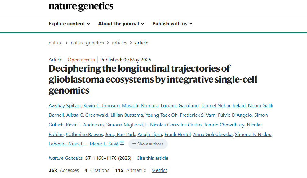 Spitzer A, et al. Deciphering the longitudinal trajectories of glioblastoma ecosystems by integrative single-cell genomics. Nat Genet. 2025 May;57(5):1168-1178.