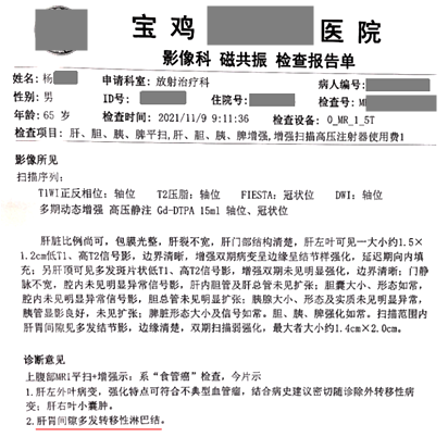腹部CT提示腹腔多發(fā)轉(zhuǎn)移性淋巴結(jié)